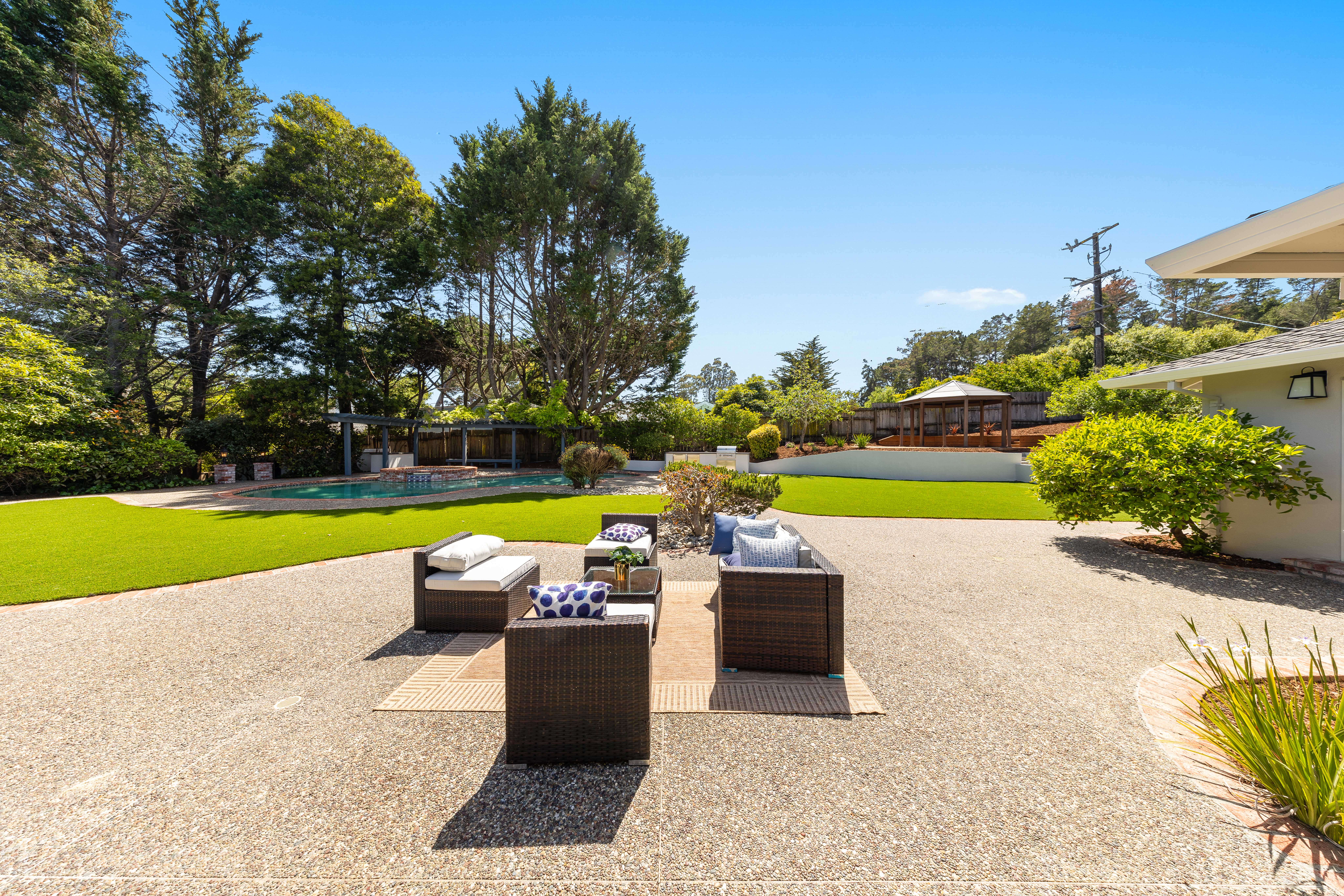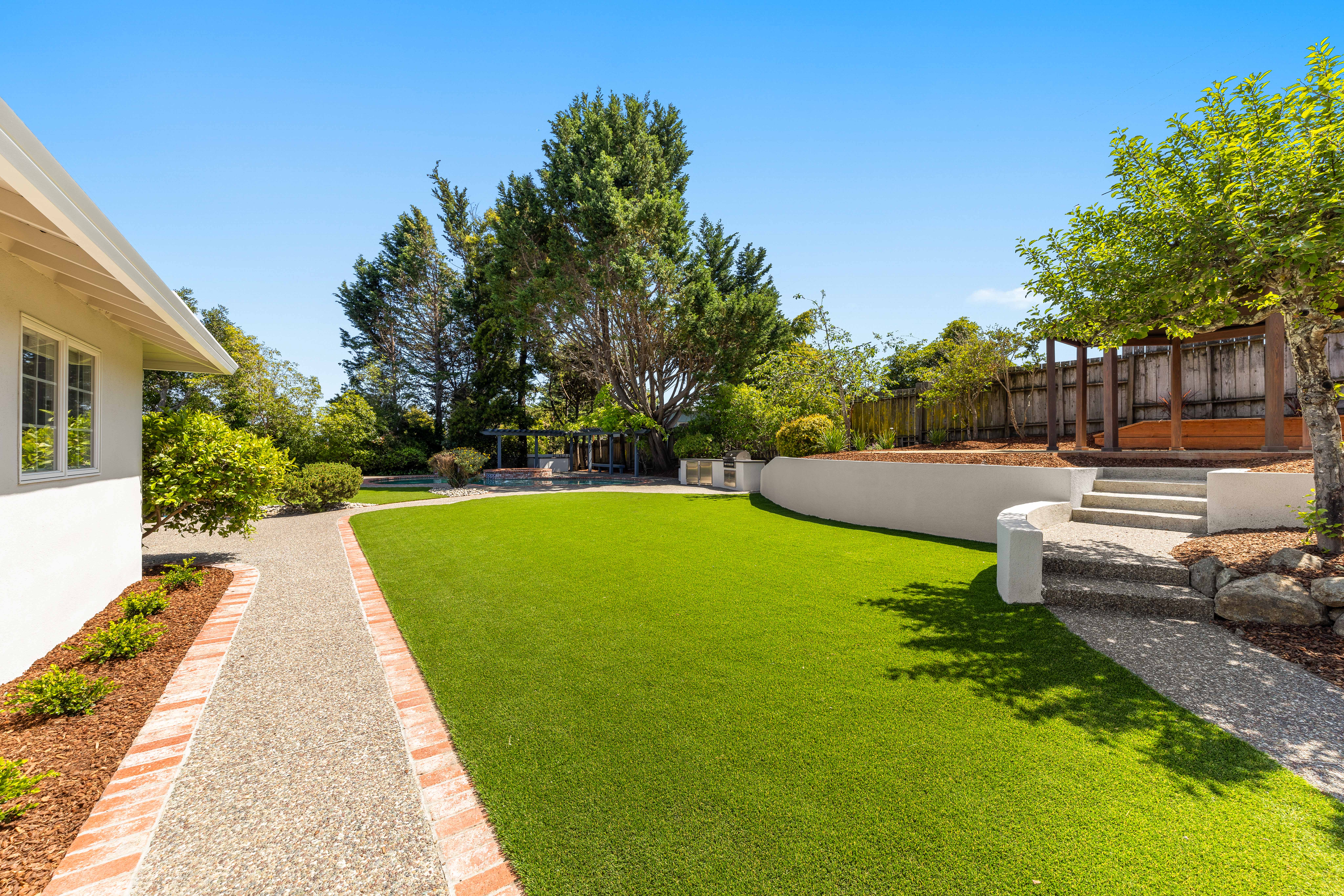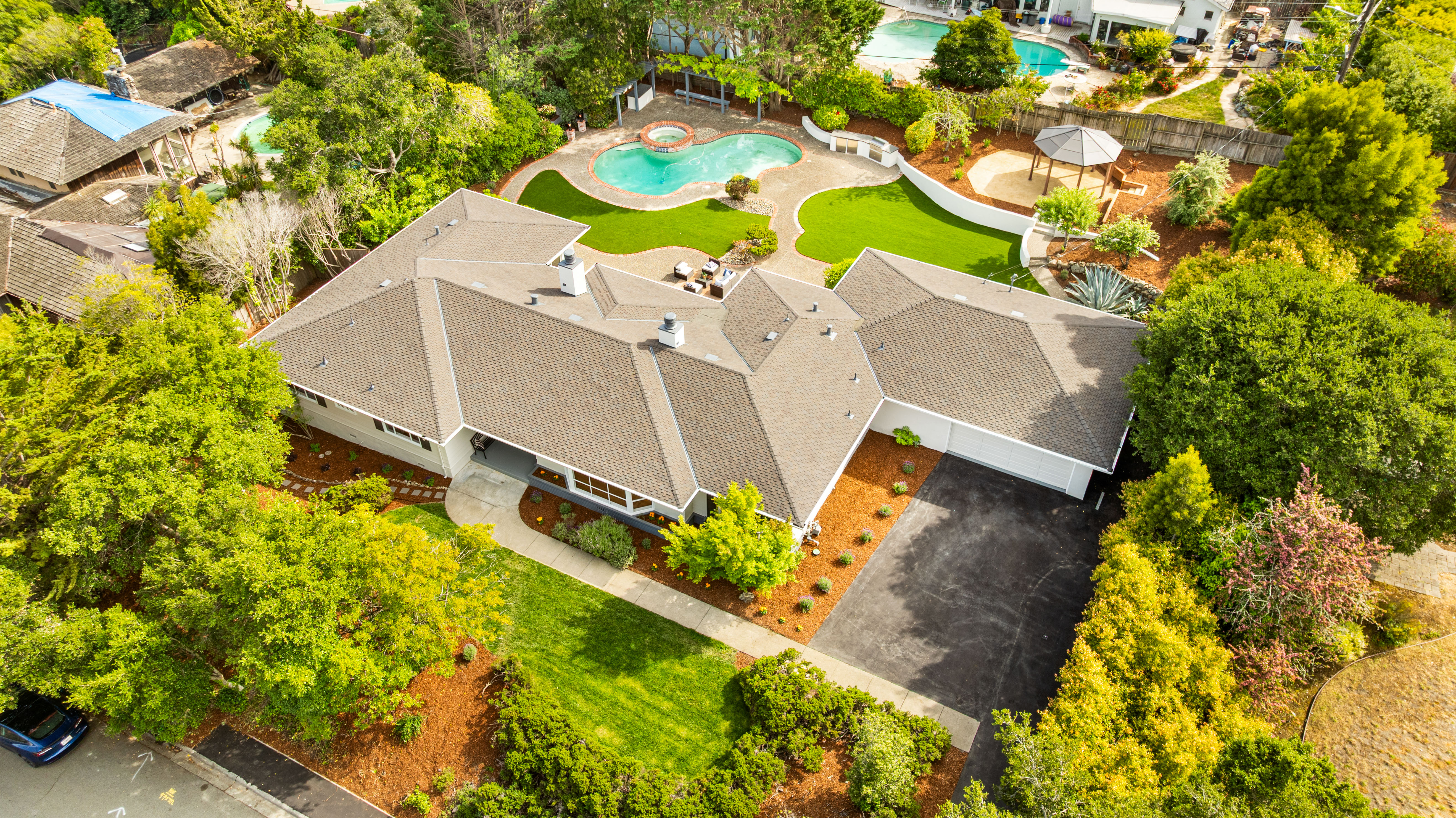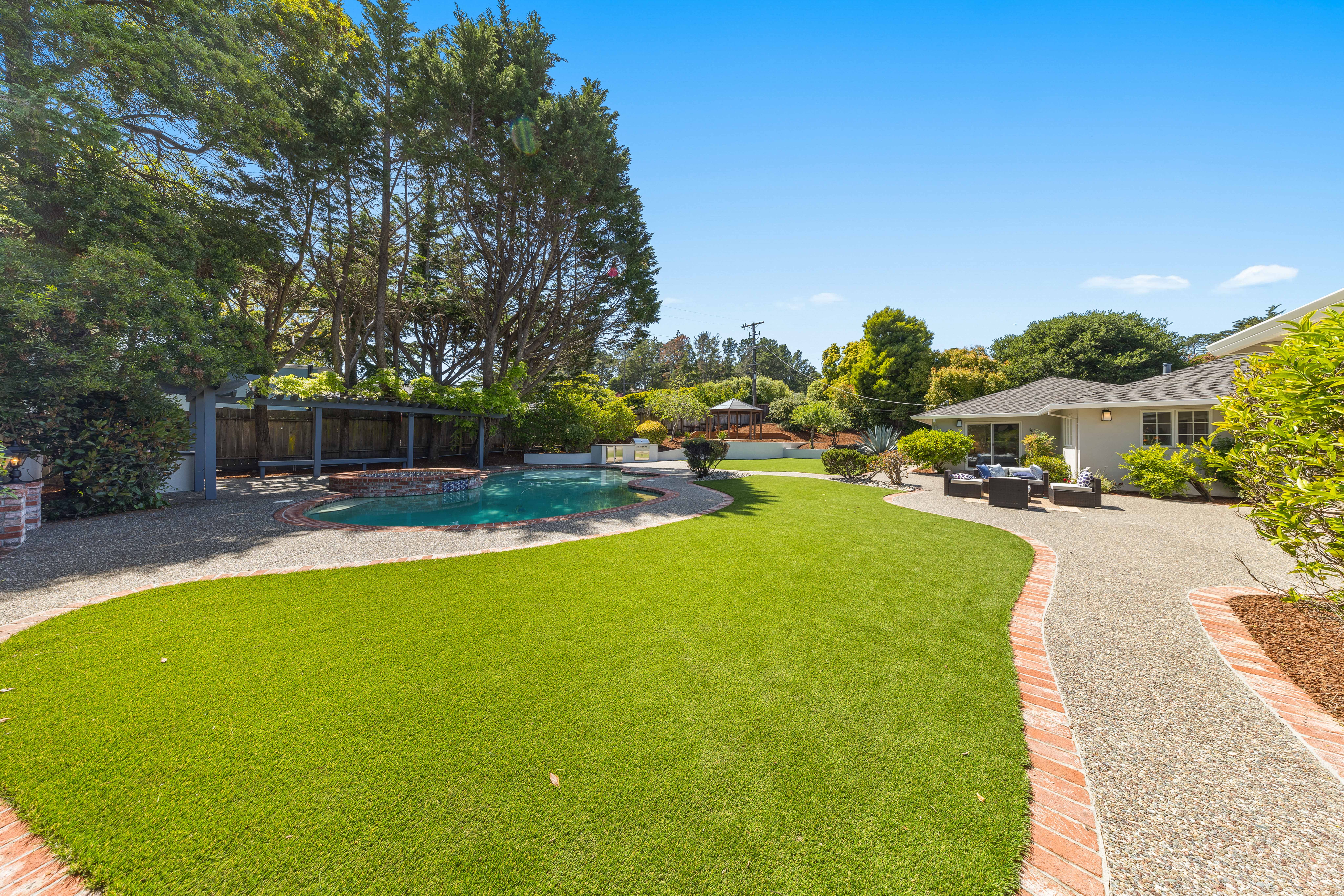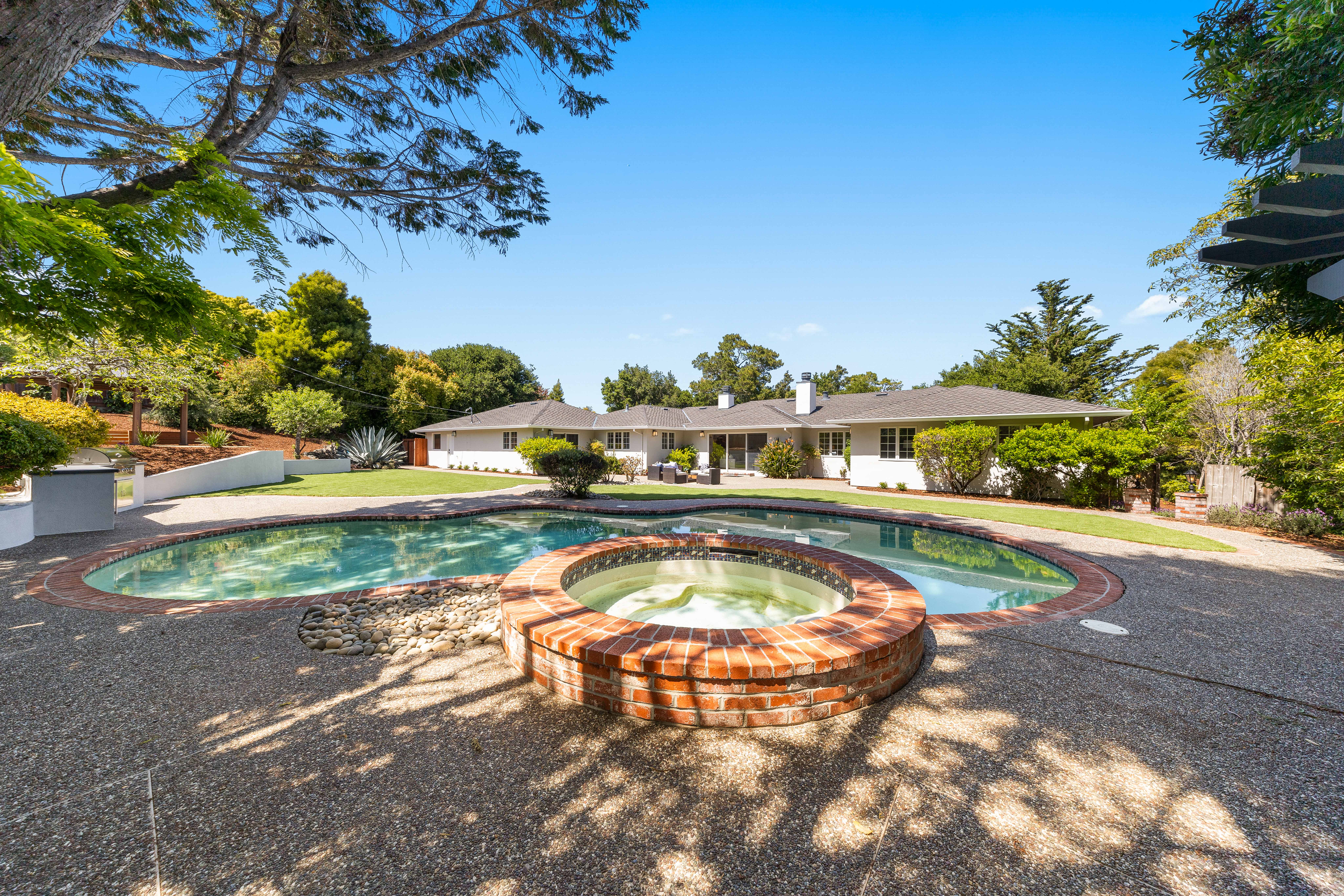 Welcome to this luxurious, newly remodeled 5-bedroom, 3-bathroom home located in the prestigious city of Hillsborough. Situated on a generous and flat 21,780 sqft lot, this expansive home offers 3,260 sqft of refined living space designed for comfort, luxury, and modern elegance. Gourmet kitchen equipped with top brand appliances seamlessly blends the spacious living rooms and lovely dining room, perfect for both everyday living and entertaining. The bright and elegant primary suite includes a walk-in closet and a full bathroom offering dual vanities and a bathtub. Completely new HVAC systems(installed in April 2025)! Most of the electrical wiring behind walls is also new (replaced in 2025)! All high end brands used - Primarily Rohl Plumbing and Toto Toilets! Most Appliances are Thermador! Wood cabinets! Step outside to your private backyard oasis, beautifully landscaped with endless opportunities for outdoor entertaining. Enjoy the tranquil setting with a sparkling swimming pool and a stylish pergola! Great schools nearby! Easy commuting to top tech campuses like Meta, Google, Apple, NVIDIA, etc. An extraordinary opportunity, this is the perfect place to create lasting memories!